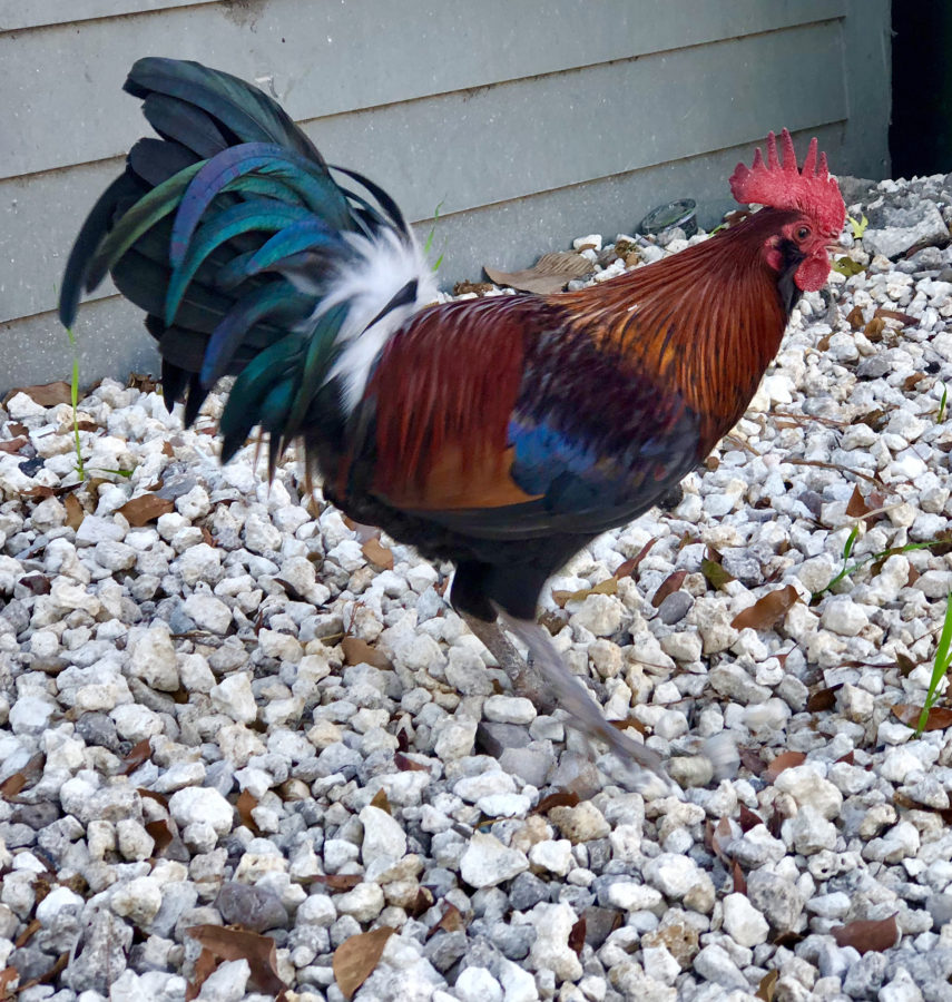 But perhaps the place’s most famous residents are Key West roosters and chickens, the colorful birds, crowing, strutting, scratching the ground, and yelling out their “err, er, err, er, errrrrrs” at ridiculously random times all day and yes, all night.