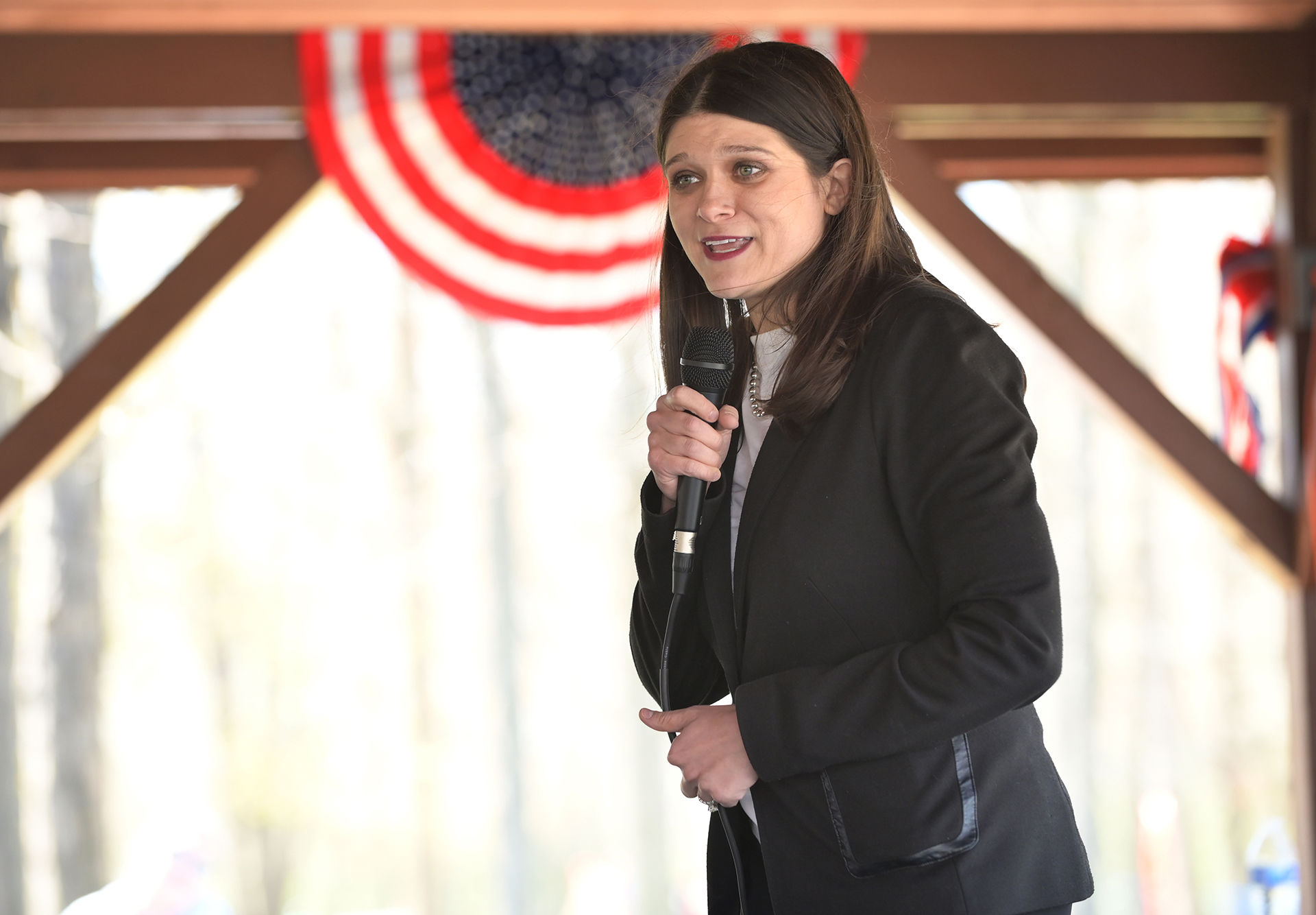 U.S. Rep. Haley Stevens tells the enthusiastic crowd she’ll do everything she can to protect a woman’s right to choose.